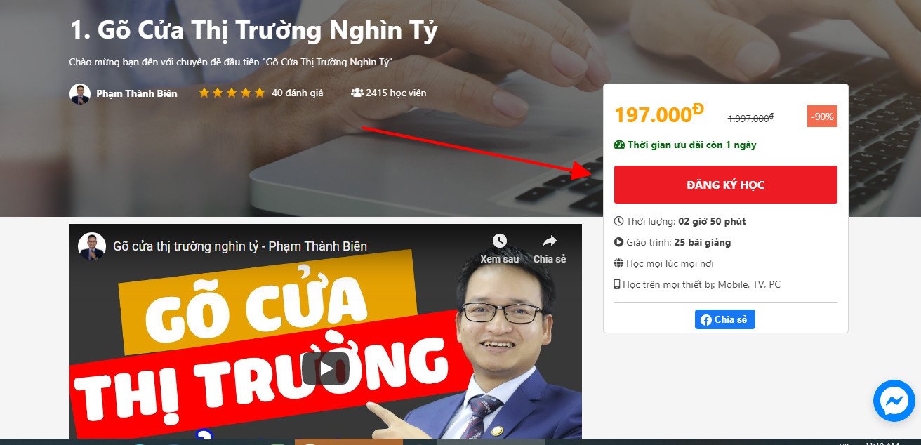 Khi bạn thanh toán chuyên đề Gõ Cửa Thị Trường Nghìn Tỷ Giá niêm yết: 197K (dùng mã JP21-1QPK-HRNQ bạn sẽ được học hoàn toàn miễn phí)