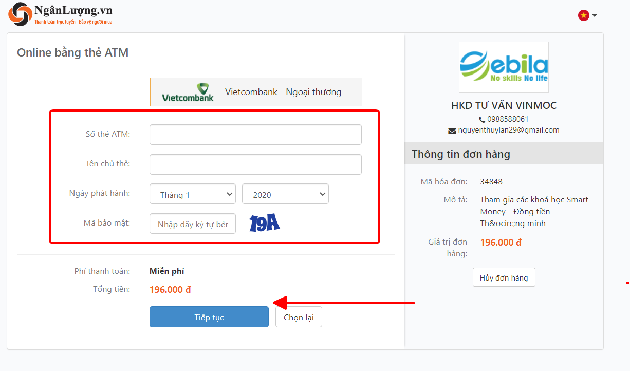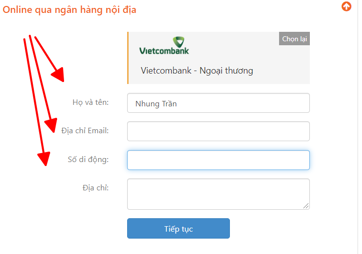 Cuối cùng bấm "Tiếp Tục" để xác nhận thanh toán