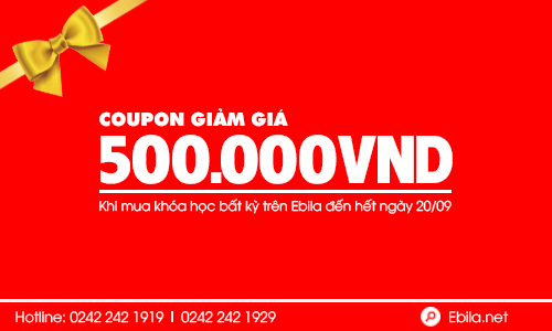Nhân dịp kỷ niệm sinh nhật EBILA tròn 1 tuổi! Tặng bạn món quà tri ân bạn có thể mua 1 khóa học bất kỳ trên Ebila mã ưu đãi giảm 500K: PH2J-RQ3E-J3MV